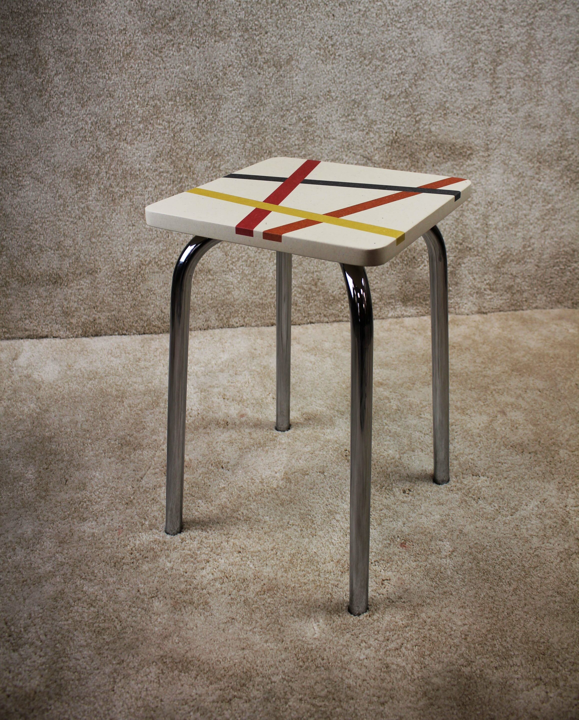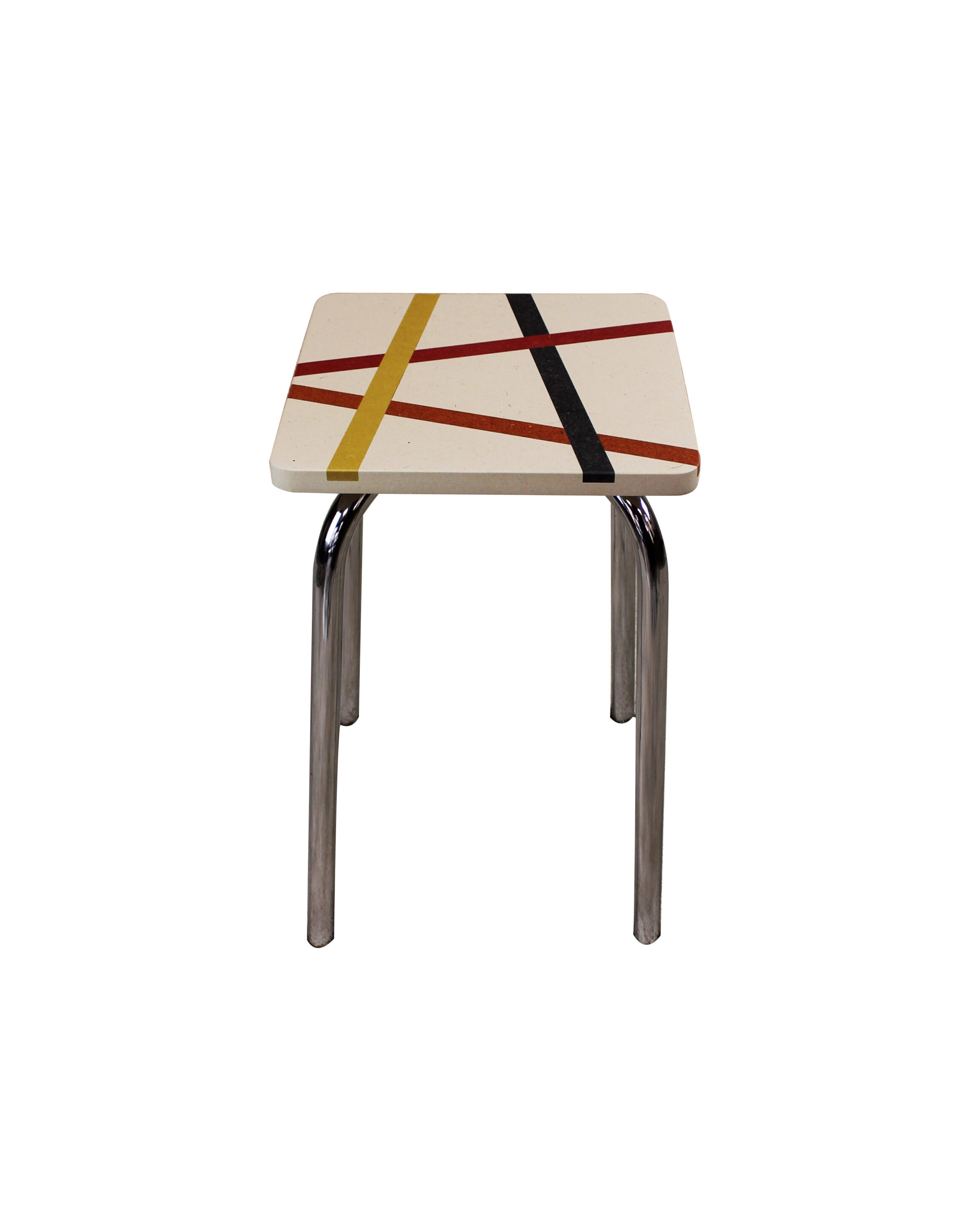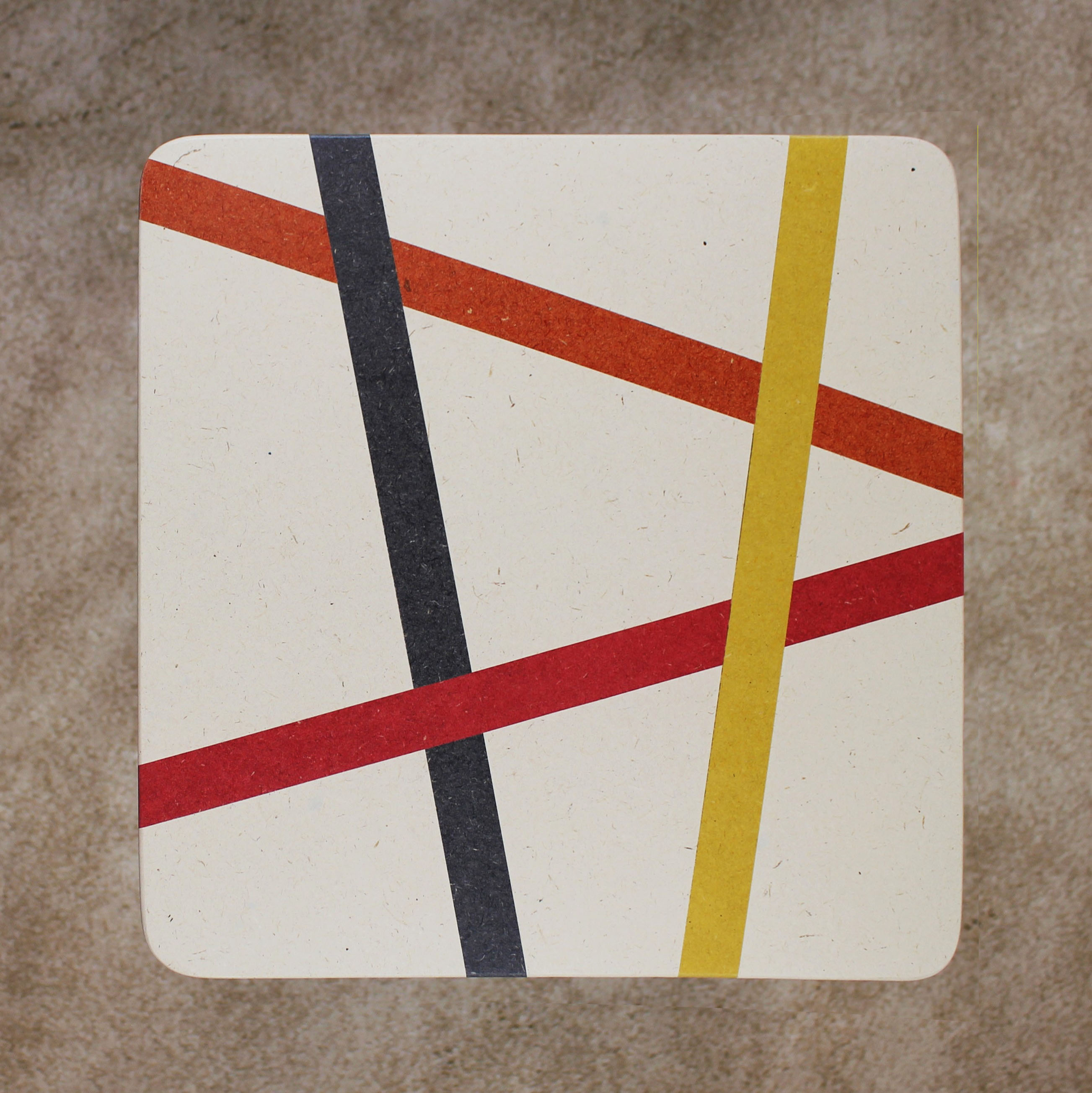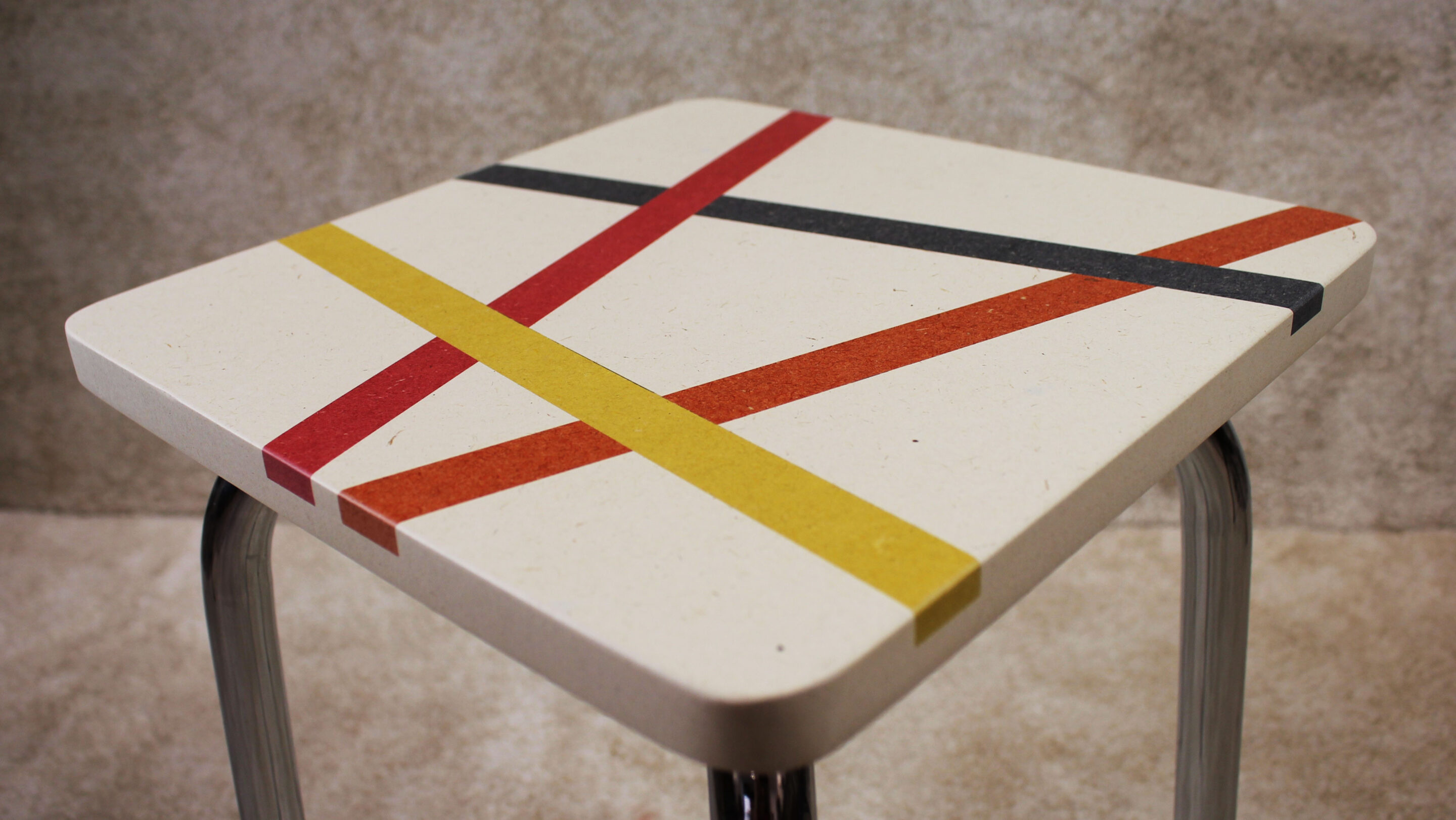 Valchromat blanc avec des baguettes jaune, orange, rouge et grise incrustées