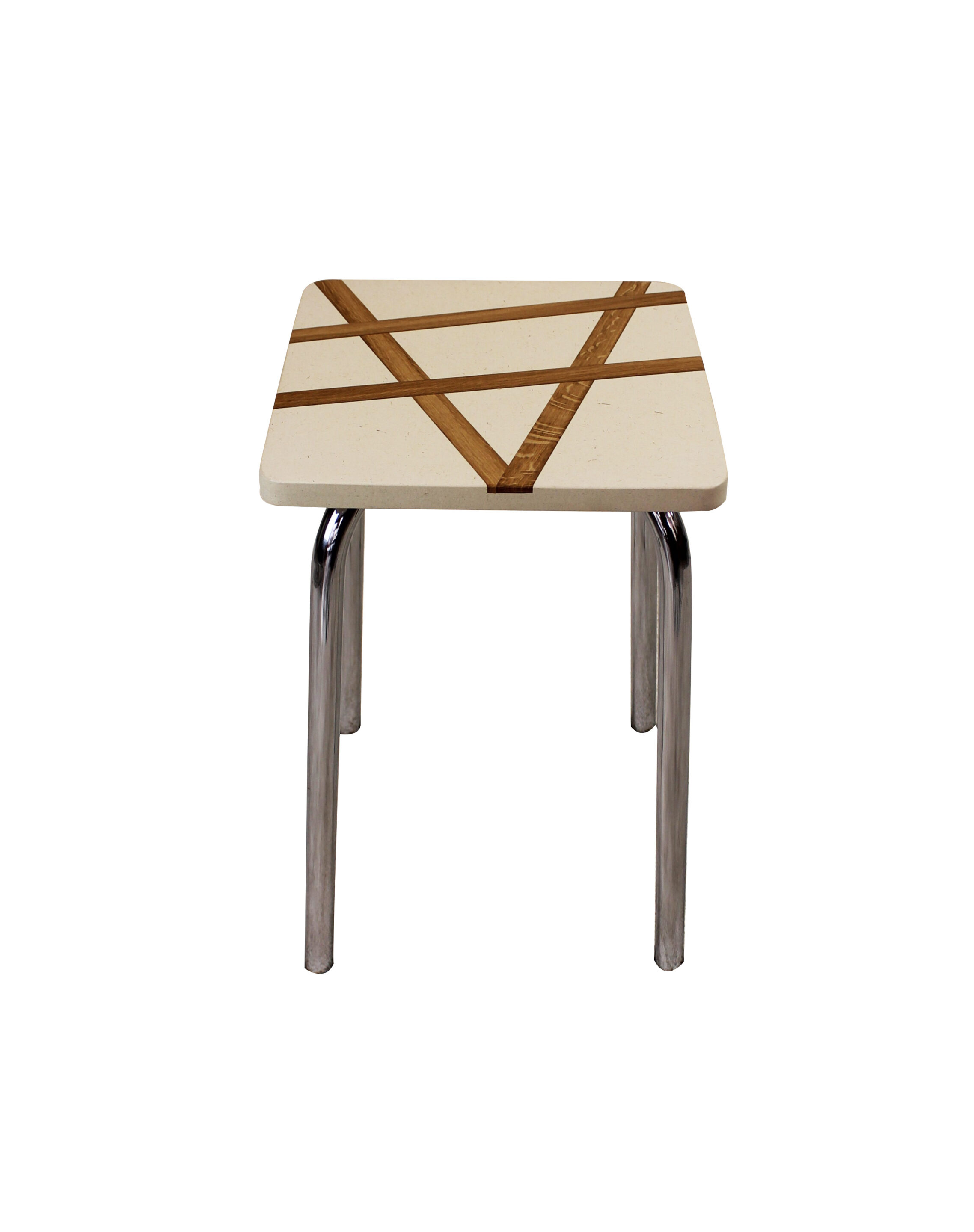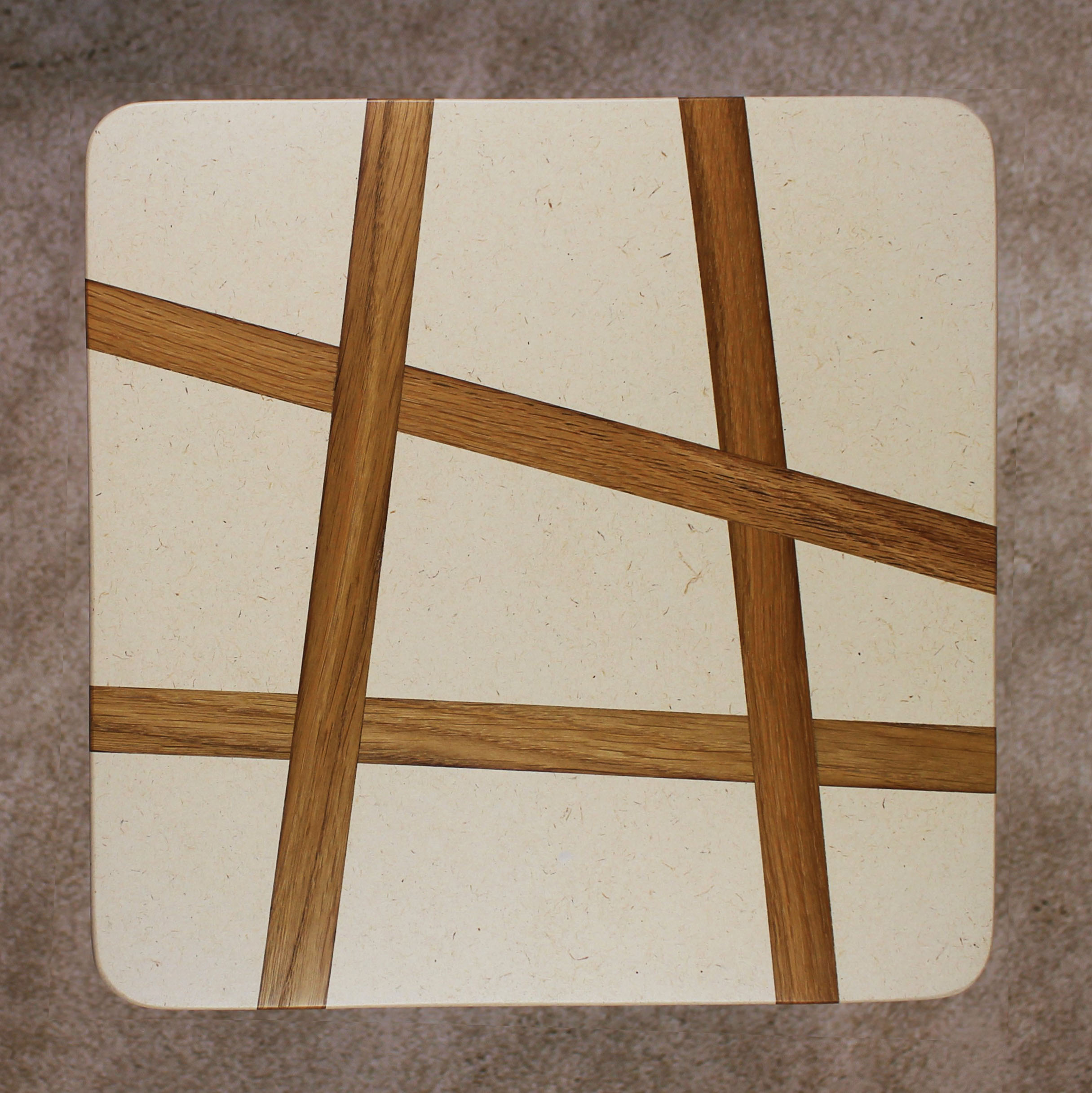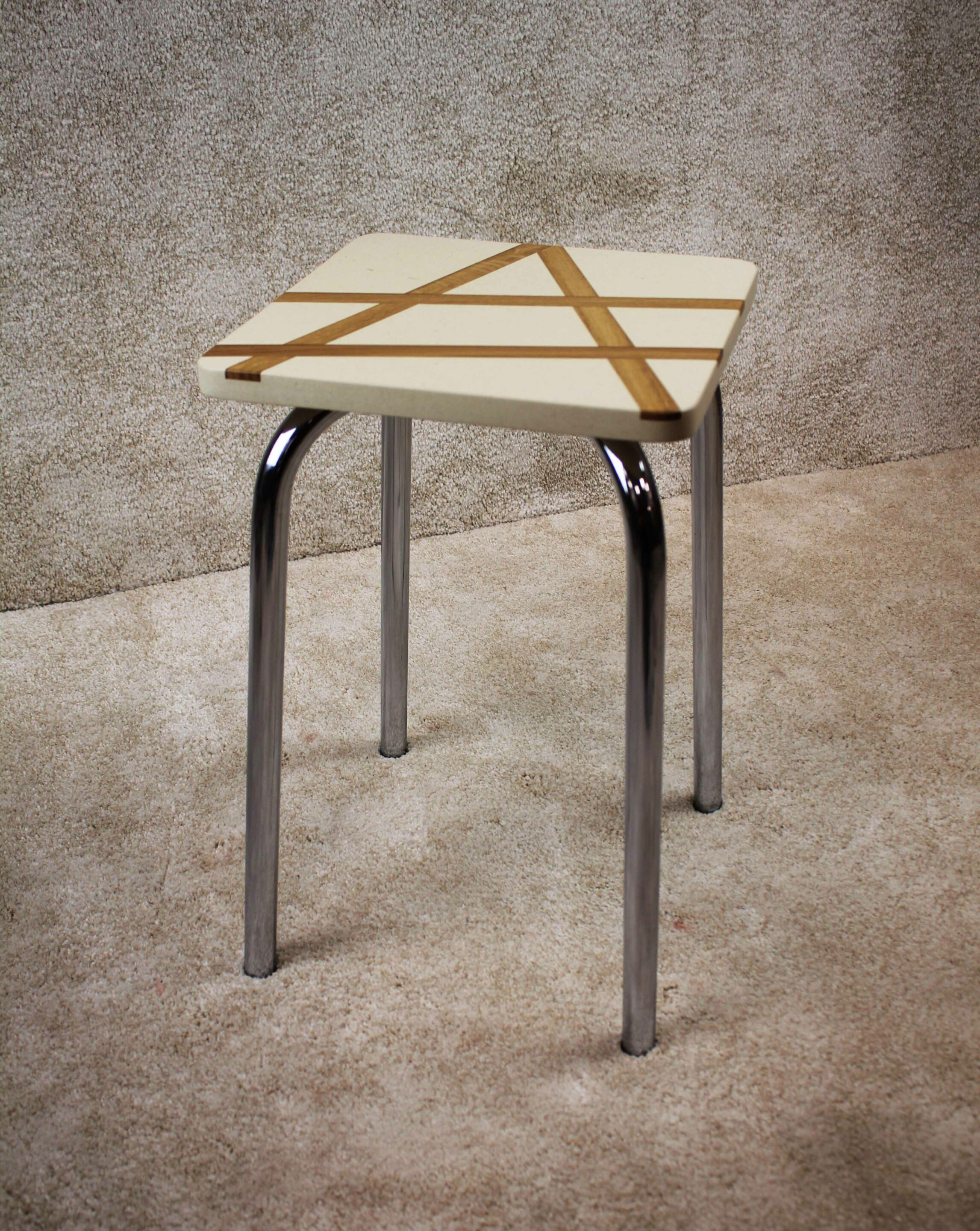 Quoi de mieux pour tester cette nouvelle colorie (WhitePearl) de Valchromat qu’un joli tabouret avec des incrustations de chêne massif ?